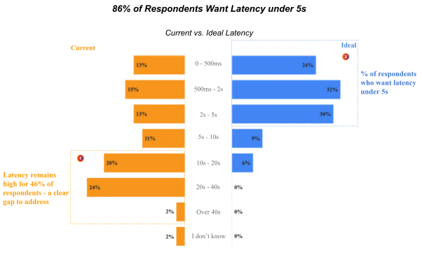 As the graph above illustrates, at least 80% of respondents felt that latency was important. So that answers the basic question. But, on a deeper level, another question remains unanswered: “how much latency should we strive for?”